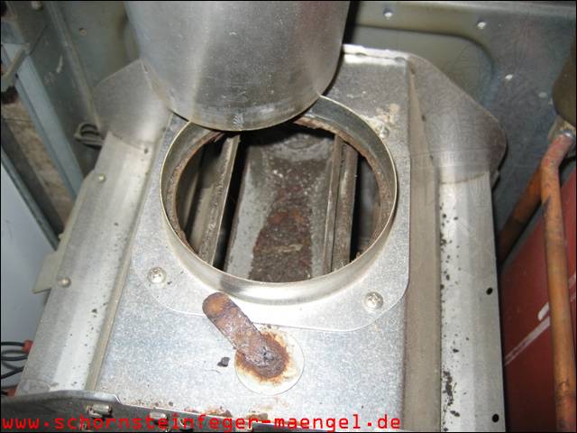 Abgasaustritt, da Heizgaszüge sehr stark verschmutzt! |