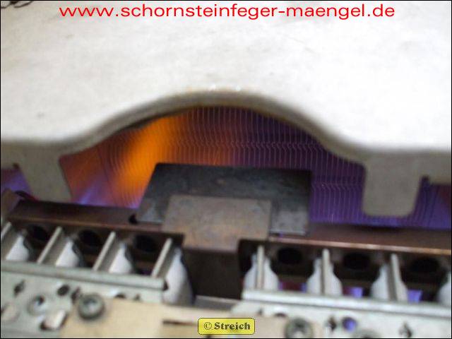 stark verrußter Wärmetauscher und schlechtes Flammenbild mit CO-Bildung,